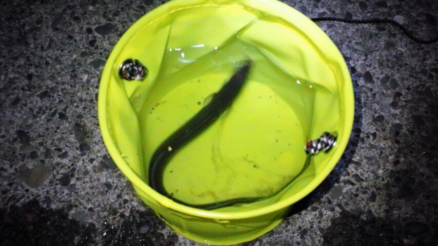 今日のは元気良くて、掴む時に軍手と足側のすそと靴を咬まれながら格闘してました。