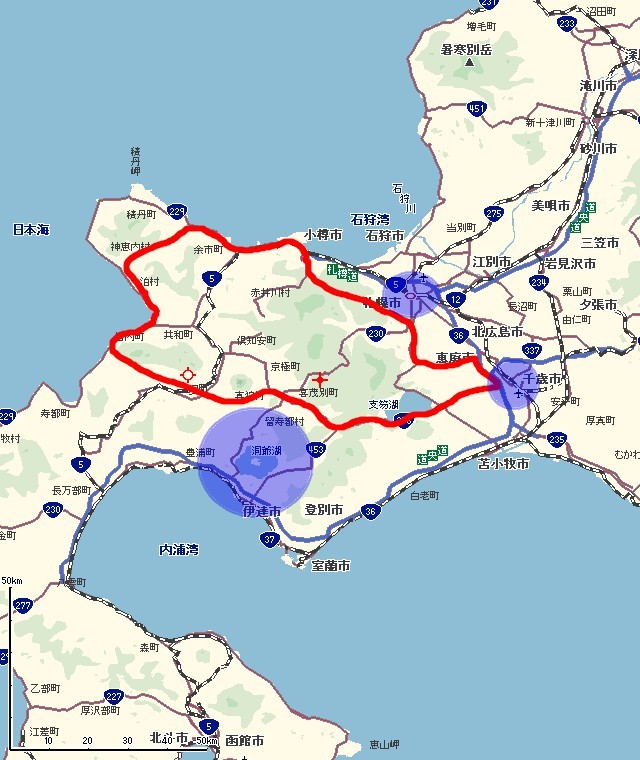 青○部分は洞爺湖サミットの為に交通規制&検問だそうです。